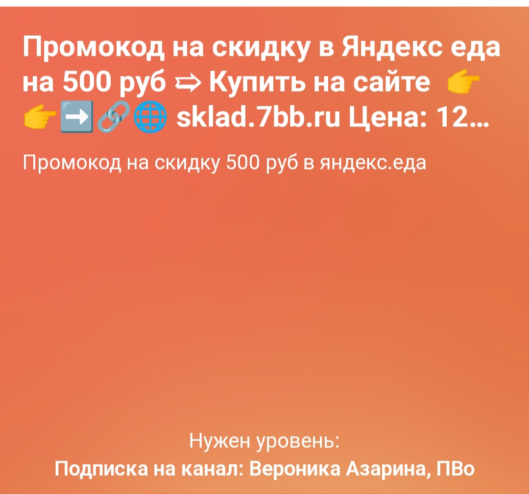 Вы здесь » Сайт -> Огромный Склад ВСЕГО!!! Инфопродукты, ИНФОКУРСЫ, Программы, Игры, Музыка, Mp3, Видеокурсы, Обучение, Эл. Книги, Аудиокниги, Журналы, Аудиосеансы и многое другое ... по низким ценам !! » Разное » Промокод на скидку в 500 руб в Яндекс еда ➯ Купить на сайте 👉👉➡ᥧ