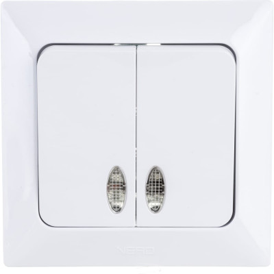 Выключатель двухклавишный, с подсветкой, Цвет белый